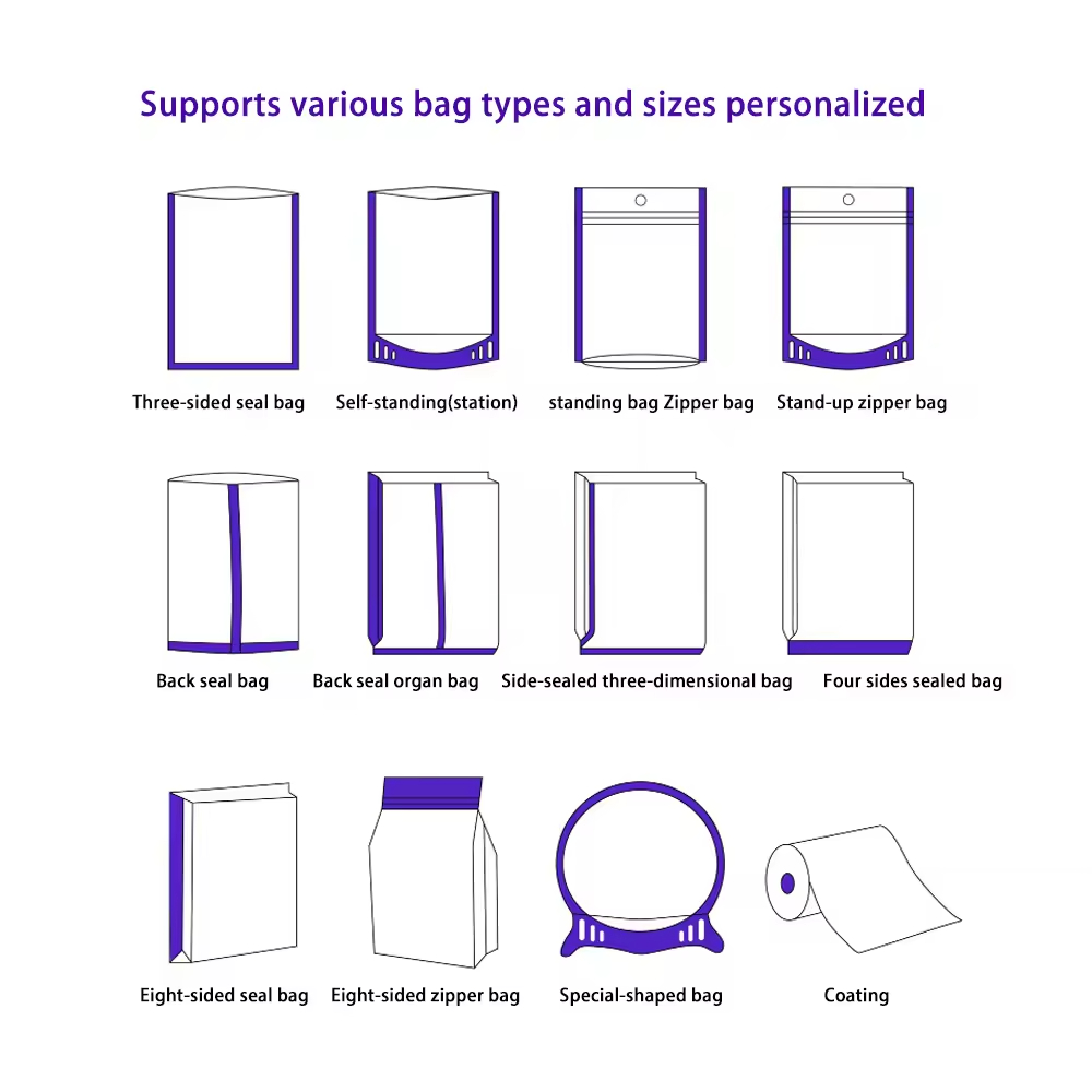 Elevate your food packaging with our Custom Stand-Up Zipper Bags — expertly engineered with a premium aluminum foil composite structure that delivers unmatched protection and preservation. Designed for discerning food brands, these bags combine advanced barrier technology with practical convenience to keep your products fresher, longer.